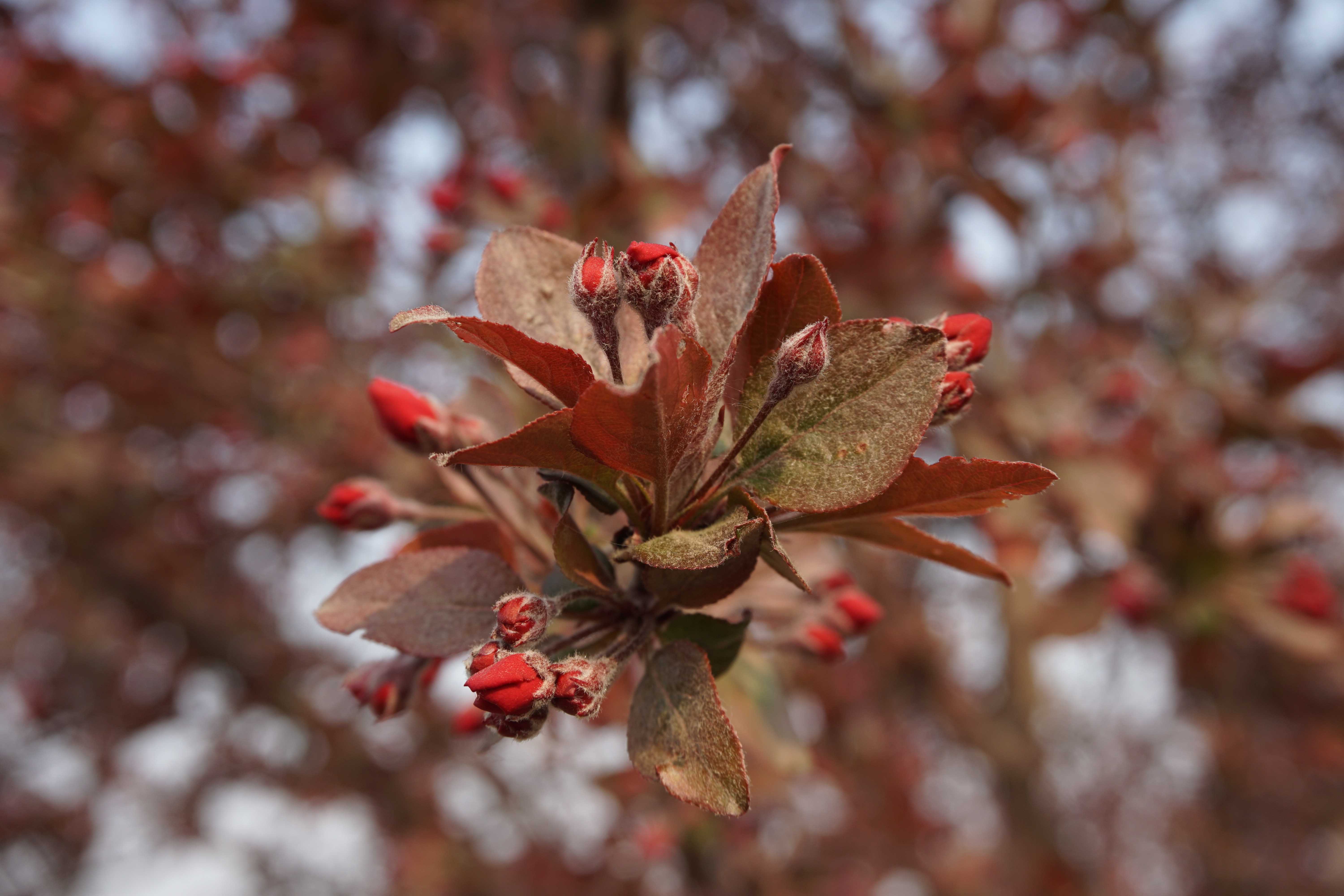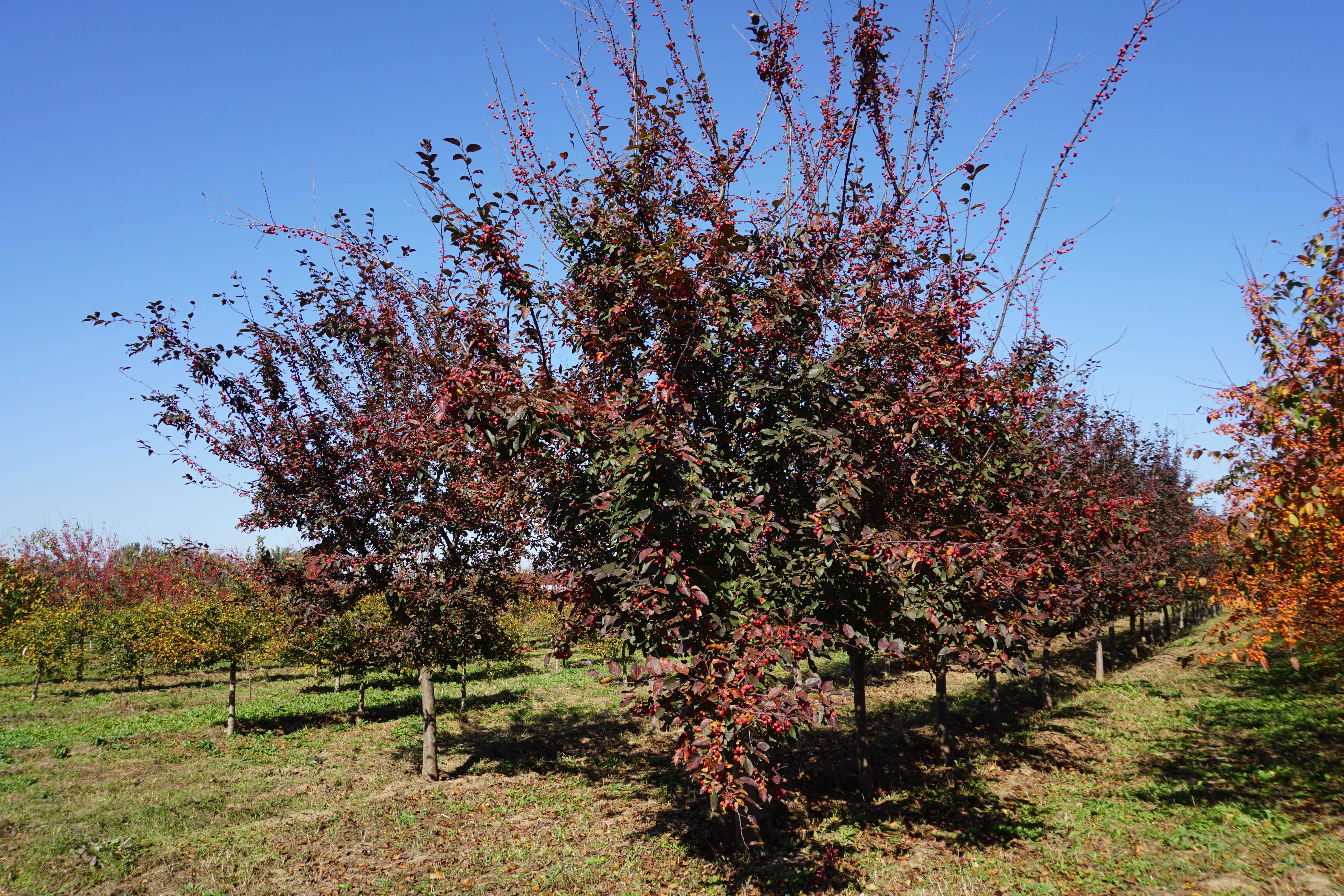 描述 Description 小型海棠品种,树形水平开展。开亮红色花。光亮的红色叶片高抗在潮湿地区易发生的苹果疮痂病和白粉病。果实小,秋季深红色,果量少。 This small crab has bright red flowers and a horizontal spreading form. The glossy reddish foliage is highly resistant to apple scab and mildew in humid areas. This tree bears small, deep red fruit in fall, but not in abundance. |
